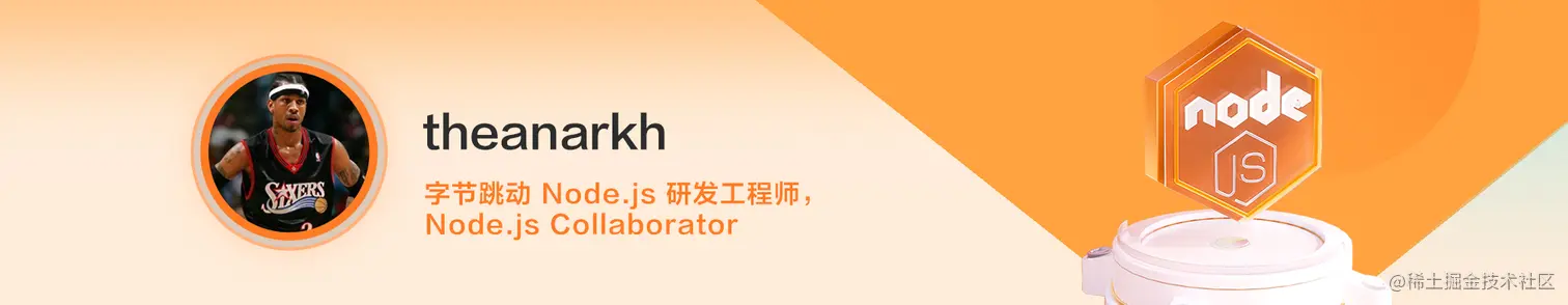 theanarkh,字节跳动 Node.js 工程师,目前主要负责 Node.js APM 方向的工作,曾在腾讯云 / IMWeb / WebInfra 等团队工作。Node.js Collaborator 和 Libuv Contributor,业余写过玩具 JS 运行时 No.js 和 Deer,维护了公众号《编程杂技》,更多可以参考我的 Node.js 之路。