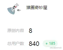 - 微信公众号「猿圈奇妙屋」从去年的40粉涨到了840个,正在迈出一小步。