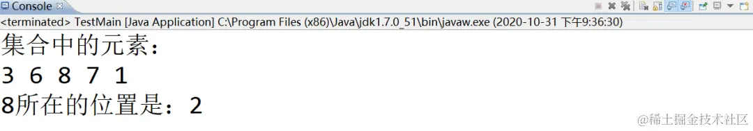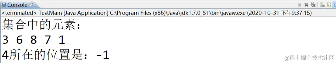 这下很清楚,使用indexOf方法查找集合中的元素,简单方便,如果有,返回该元素的下标(下标从0开始),如果没有,则返回的是-1。