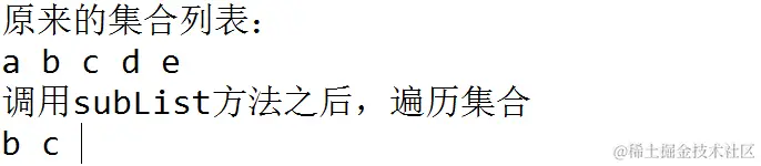 在调用完subList之后的运行结果: