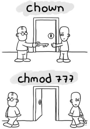 下图中通过 chown 来授权用户,通过 chmod 为用户设置可以开门的权限。