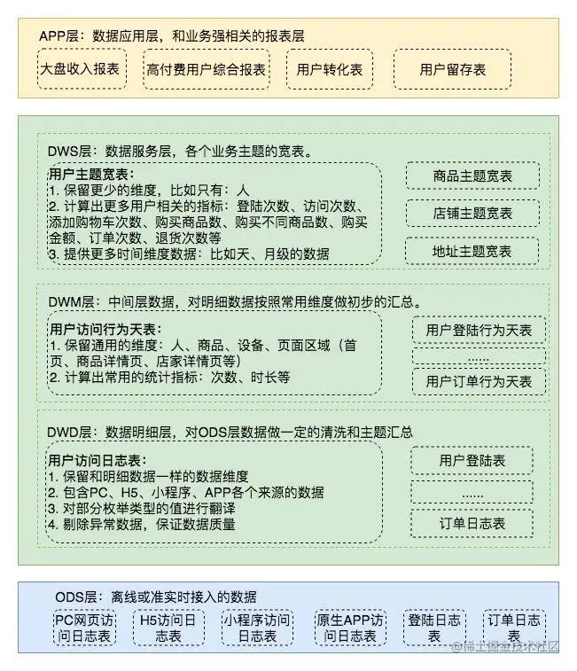 数据集市层,主要职责是建设宽表模型、汇总表模型,比如用户主题宽表、销售主题宽表等。