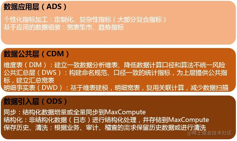 Operation Data Store)、数据公共层(CDM,Common Data Model)和数据应用层(ADS,
