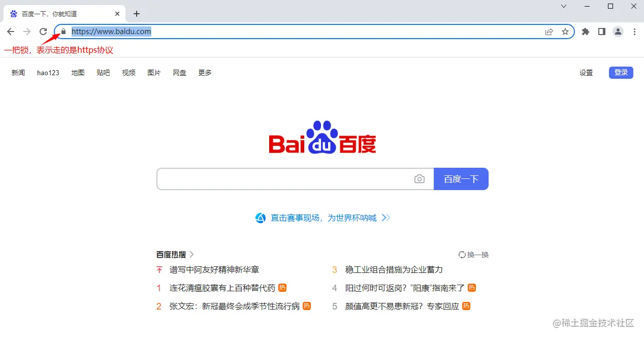 3)百度使用的是https协议,还有一个常用的是http协议,https实际上http加了一层安全协议(SSL),更安全