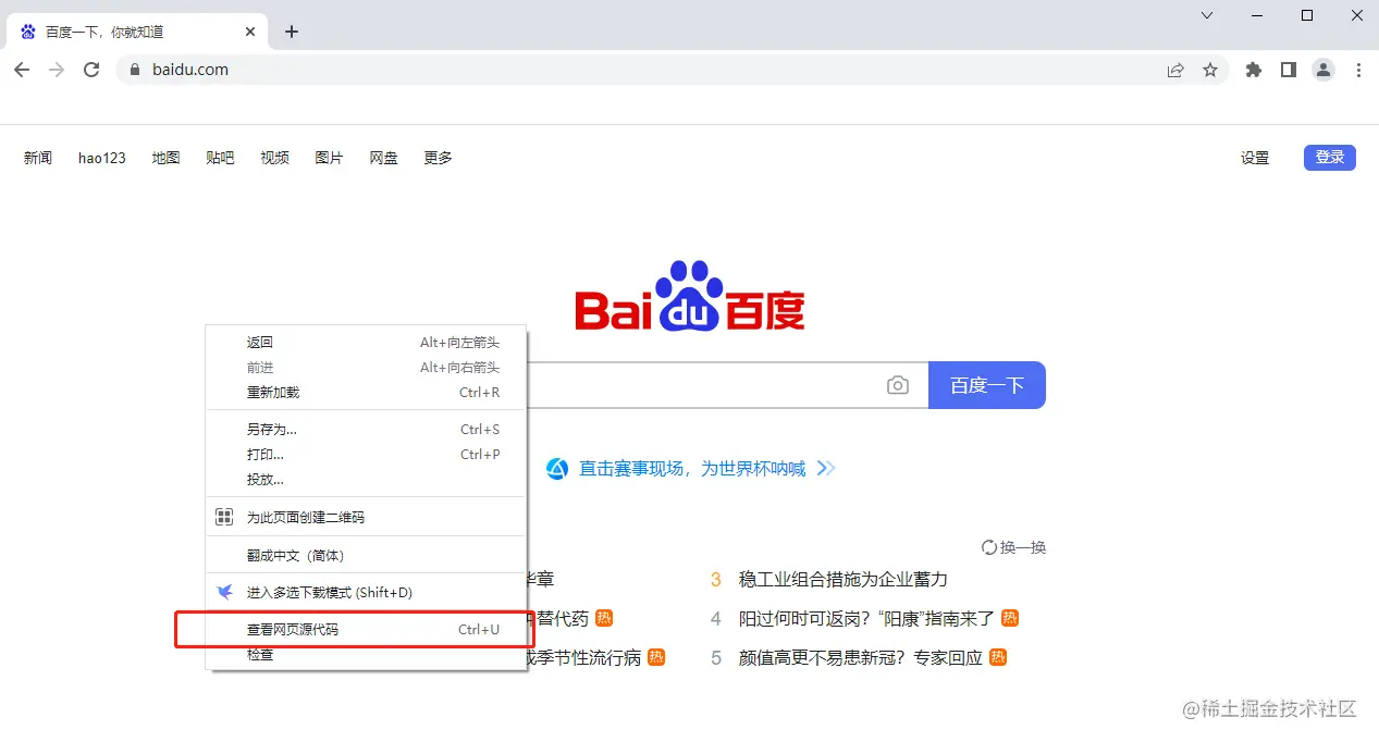 5)网页空白处,点击右键,查看网页源代码