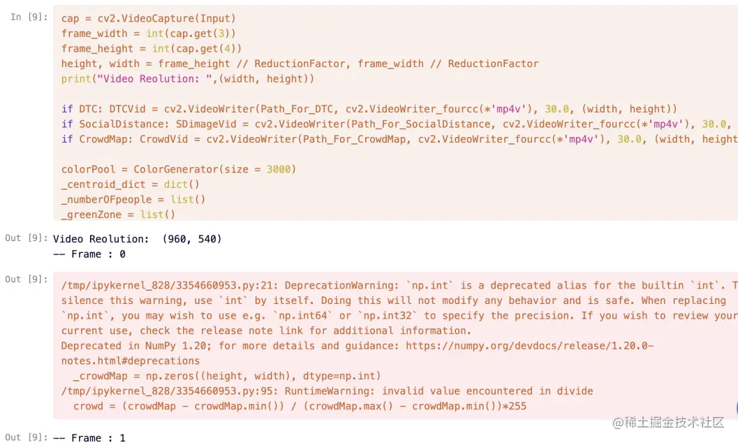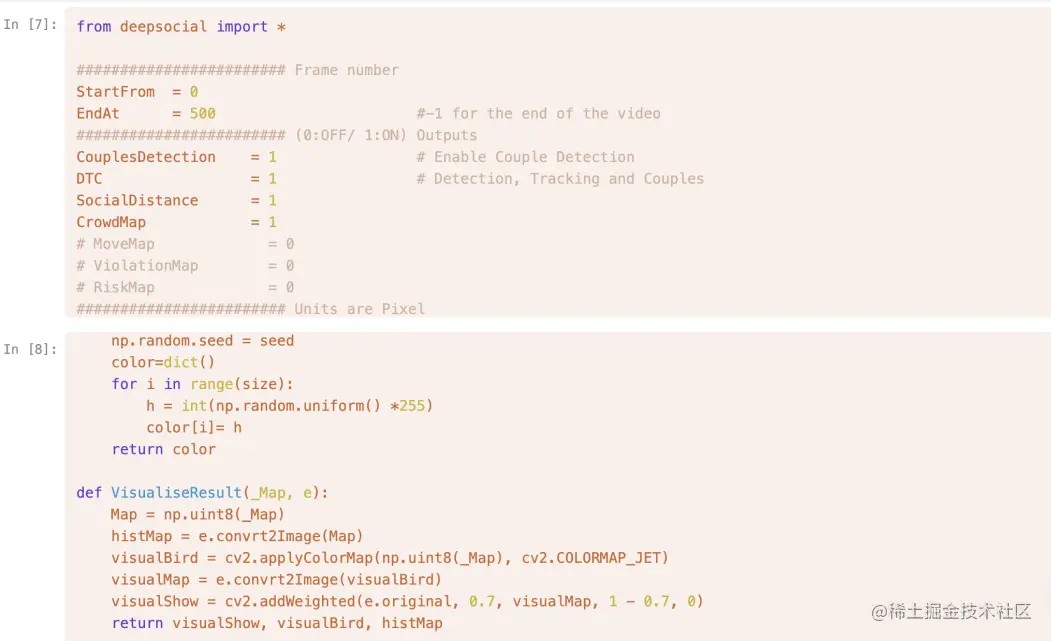 infer.ipynb 主要介绍了监测社交距离和评估感染风险的推理过程,你可以输入一段行人视频,得到对应的监测和评估信息