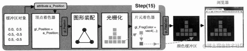 颜色会被写入颜色缓冲区最后渲染在浏览器上面。
