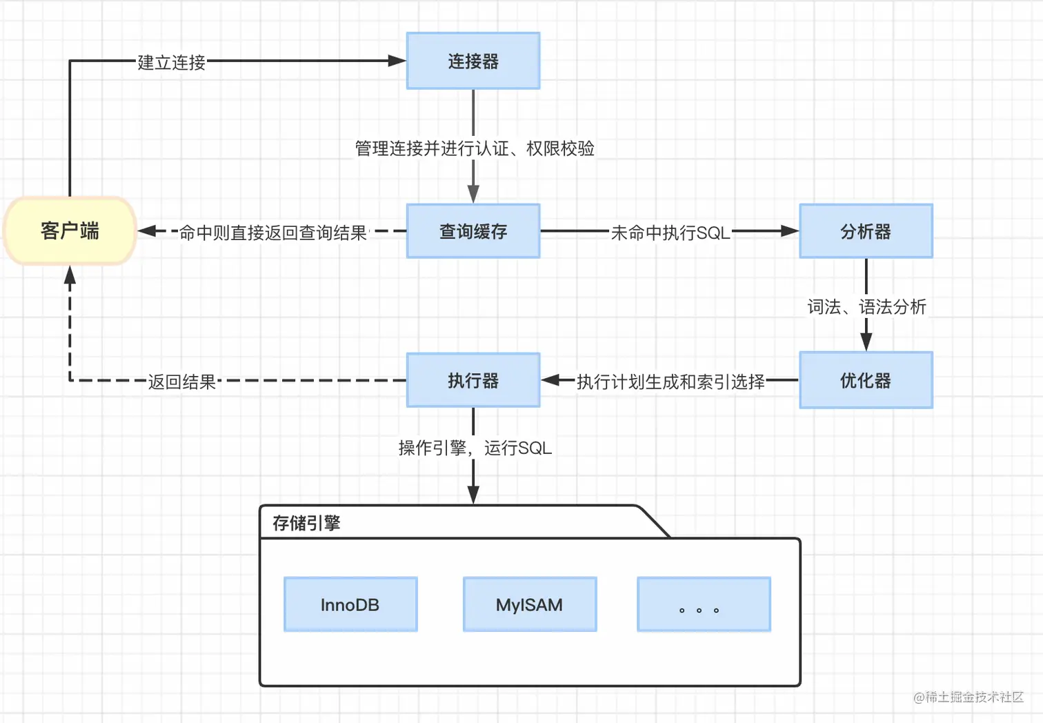 - 执行器操作存储引擎执行 SQL 语句,返回结果