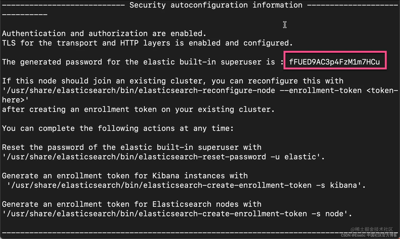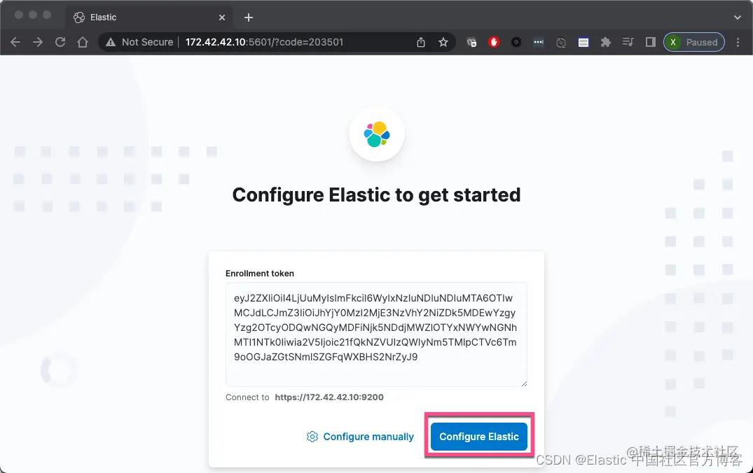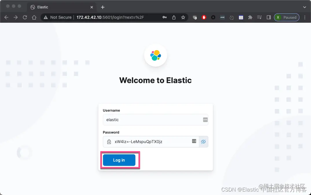 在上面,我们输入超级用户 elastic 的密码: