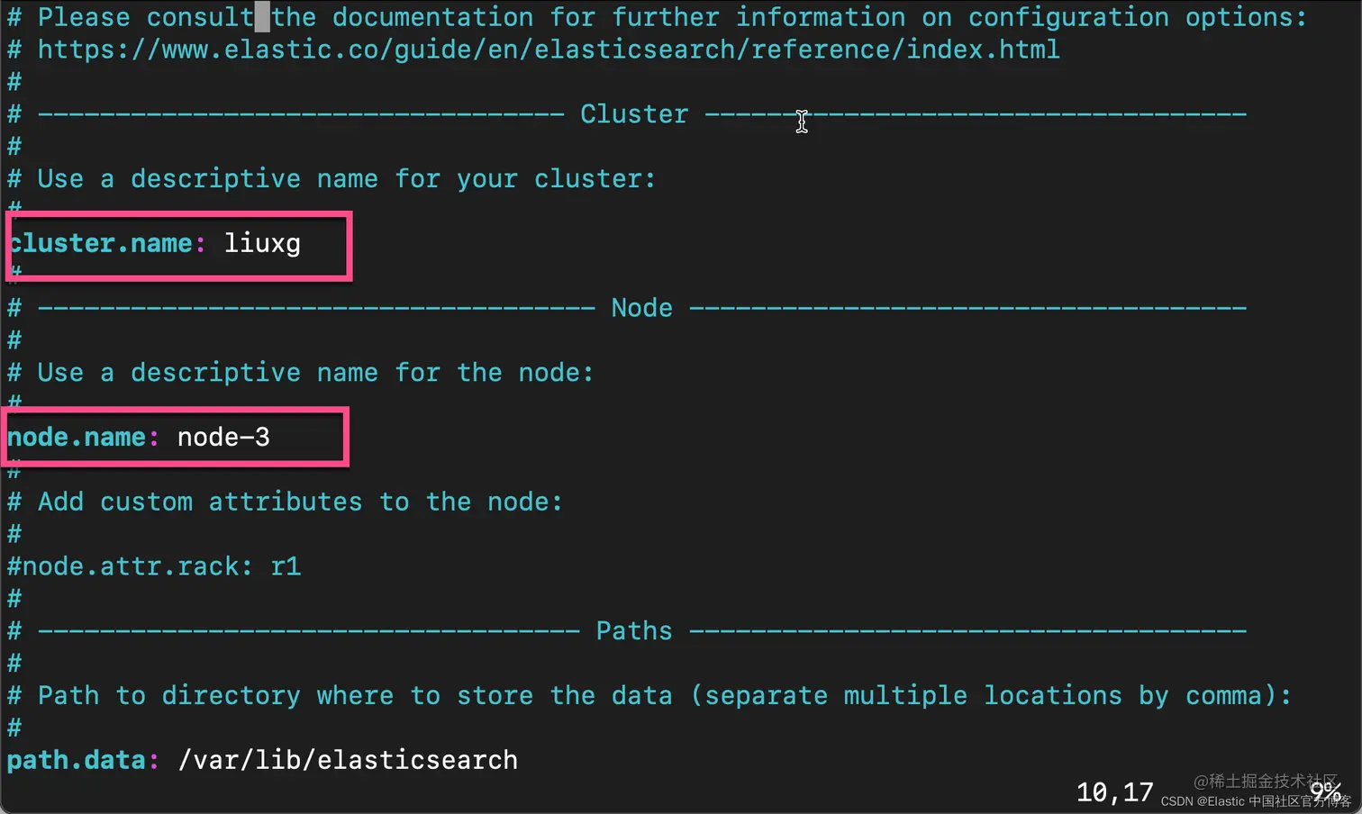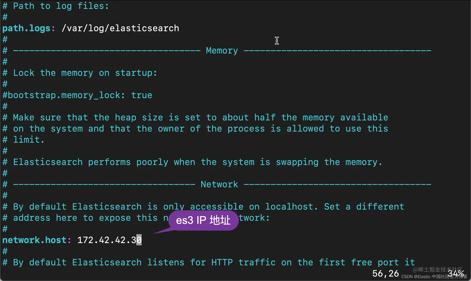 如法炮制,我们需要针对 es3 做同样的配置。只不过我们需要为它取另外一个名字 node-3。我们也需要把它的 IP 地址填入进去。