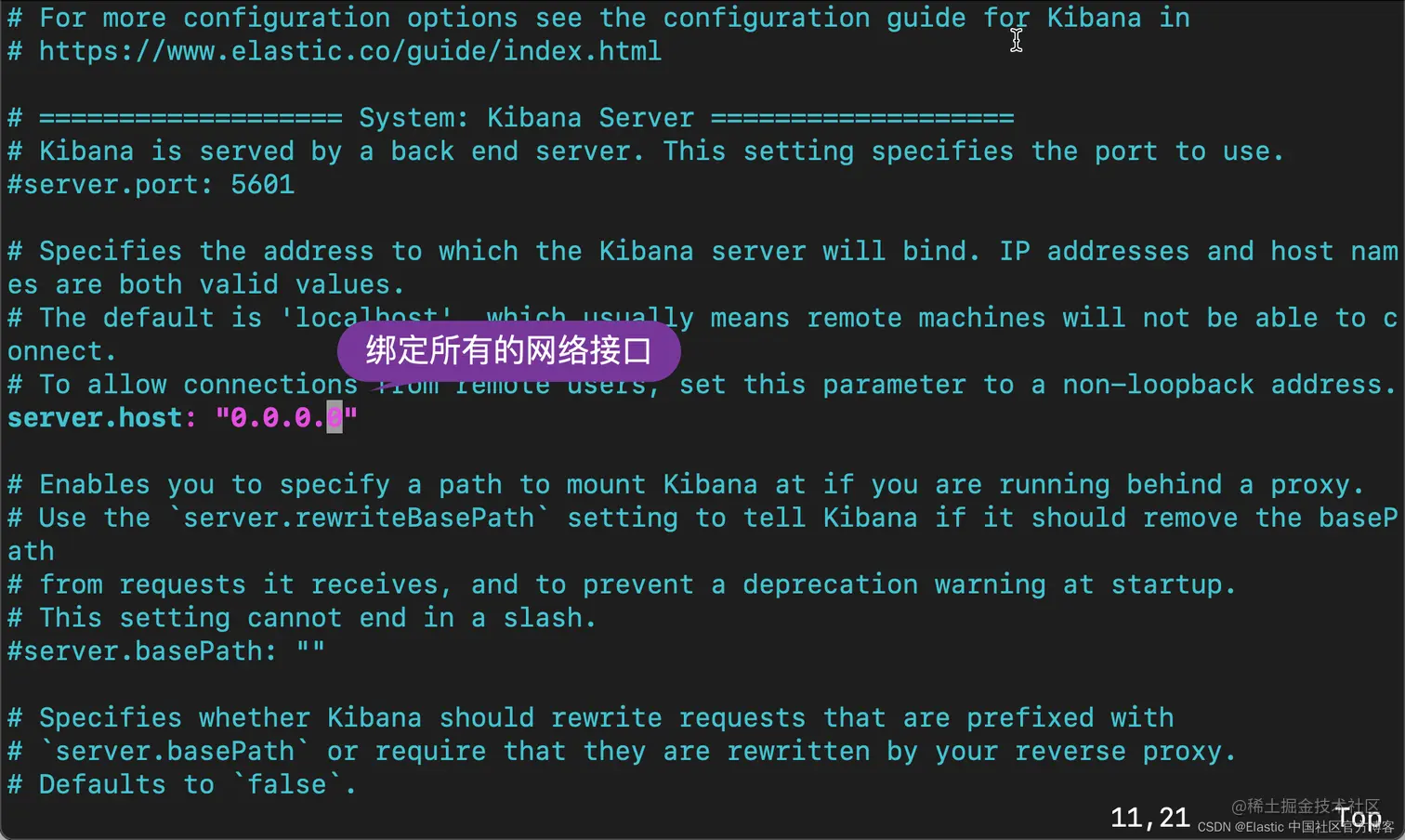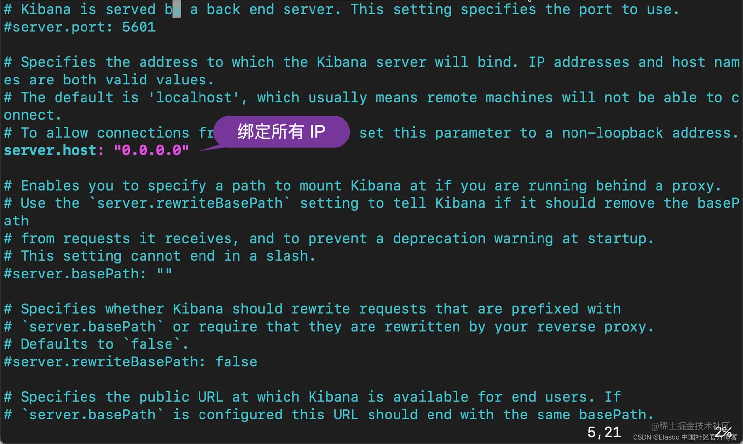 在上面,我们还没有启动 Kibana。为了能够让 Kibana 被外网所访问,我们需要对 Kibana 做如下的配置: