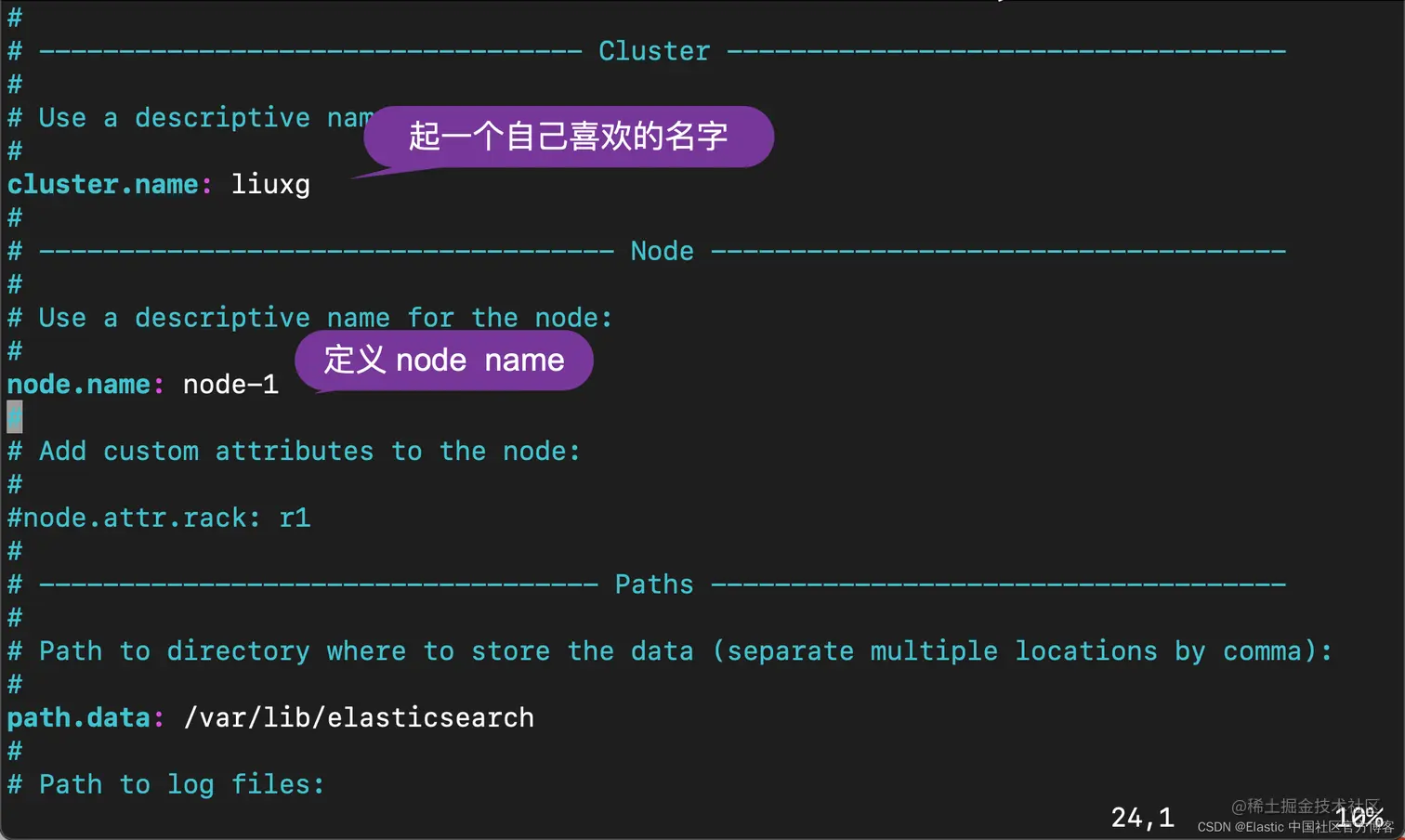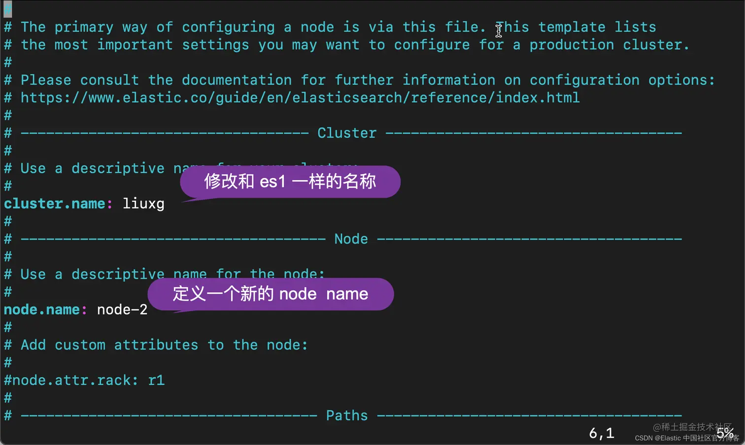 我们需要针对 es2 上的 elasticsearch.yml 进行一些配置: