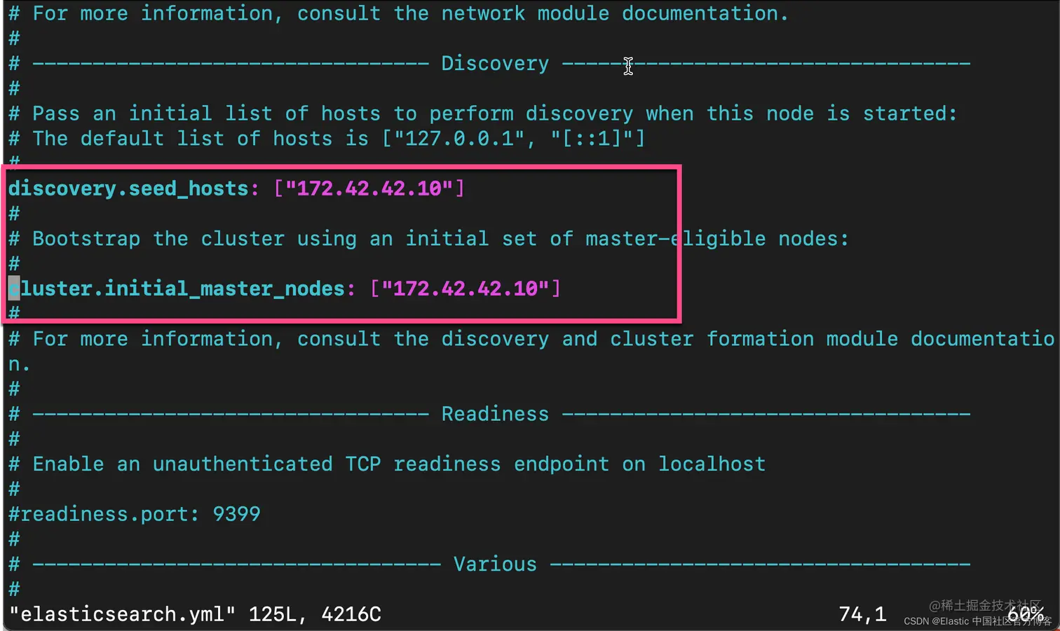 1. elasticsearch.hosts: ["https://172.42.42.10:9200"]