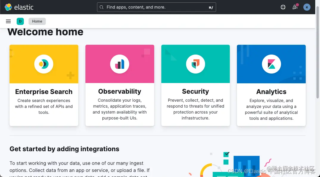 在上面打入超级用户 elastic 的密码。你就可以进入到 Elasticsearch 了。