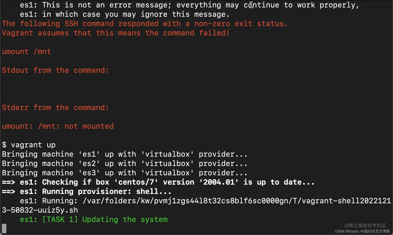 如果你遇到上面的错误信息,你可以继续使用上面的 vagrant up 命令运行: