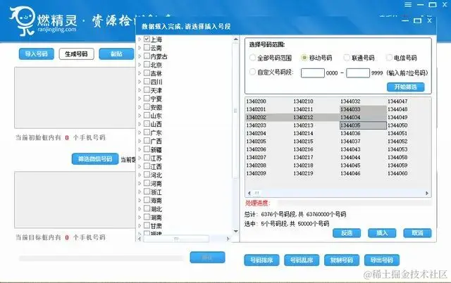 燃精灵可以按照地区生成号码段,或者可以按照运营商以及自定义号段生成号码,生成后还可以筛选掉没注册微信的部分号码,微商公司可以直接用筛选后的号码进行添加。