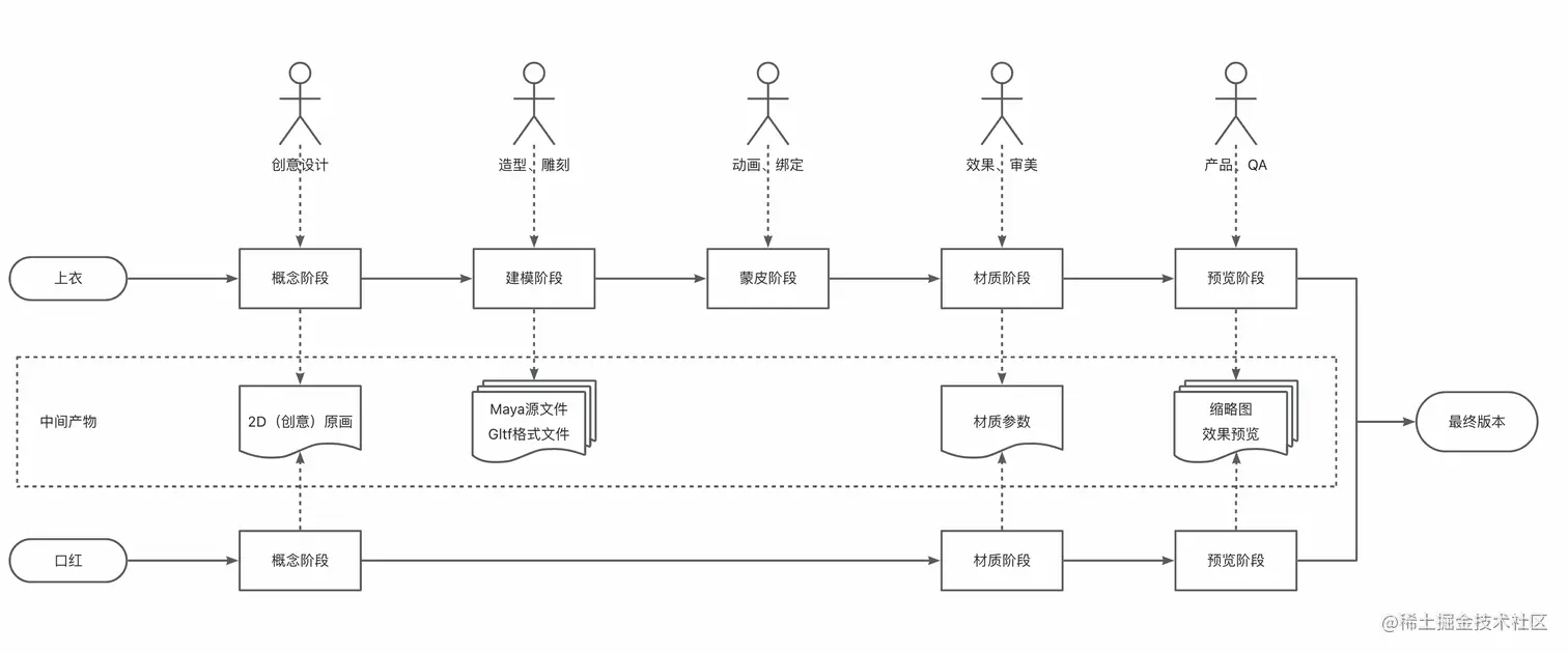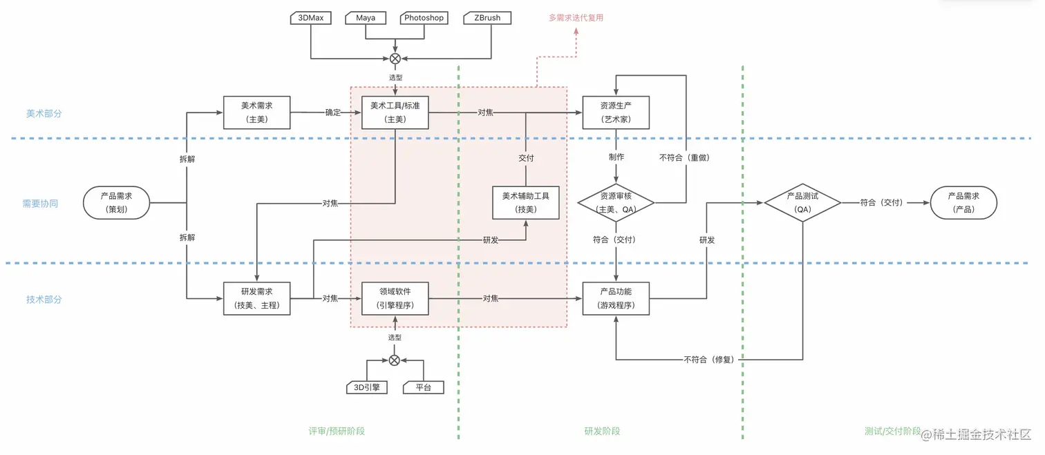 紧接着确定需要生产的 3D 内容的种类、标准和差异化流程,明确各个角色在某种生产流程中在什么时机介入:
