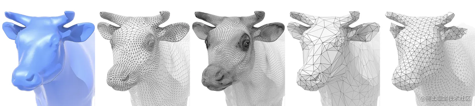 - 模型细节:通常模型都会先以高精度的标准去制作(例如影视用的标准),包括模型雕刻和纹理贴图,通过减面和重新布线拓扑的处理后可以变成适合运行时的精度(例如游戏用的标准);