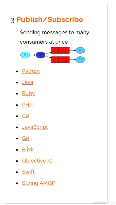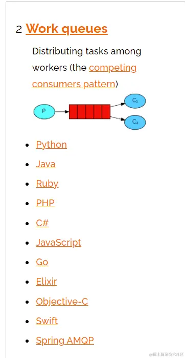 处理方式:一条消息只会被一个消费者接收,采用轮询的方式将消息平均发送给消费者,消费者在处理晚某一条消息后,才会收到一条消息