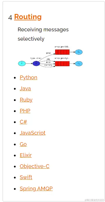 比如一个记录日志的功能,针对error型的日志记录数据库,日常info和warning进行写日志文件,那这样我们就可以使用路由模式,创建exchange【交换机】,类型为direct:这个类型表示需要明确指定路由key,为每个对应的日志类型创建队列。绑定交换机,再创建2个消费者,1个绑定error队列,1个绑定info,warning队列。进行业务处理