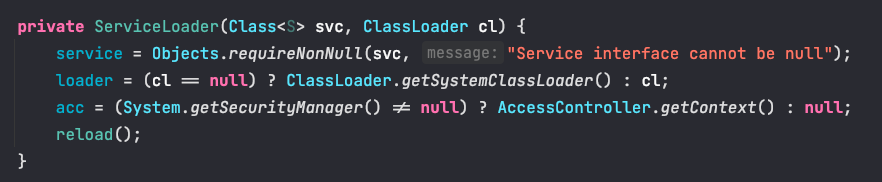 该块代码也没啥内容,声明返回了 ServiceLoader 对象,这个对象有什么文章?我们可以查看这个类声明