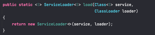其实我们上面使用SPI的时候可以看到一个关键的类那就是ServiceLoader ,该类位于 java.util包下,我们直接点进 load() 方法查看如何调用