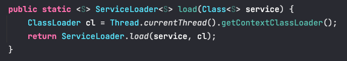 该块代码只是简单的声明了使用线程上下文加载器,我们继续跟进 ServiceLoader.load(service, cl)