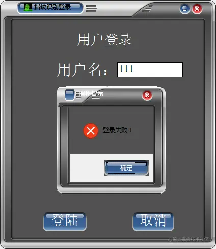 登录时,需要用户名和指纹对应,如果不对应,则提示登陆失败,采集器闪红灯以及有警告声响