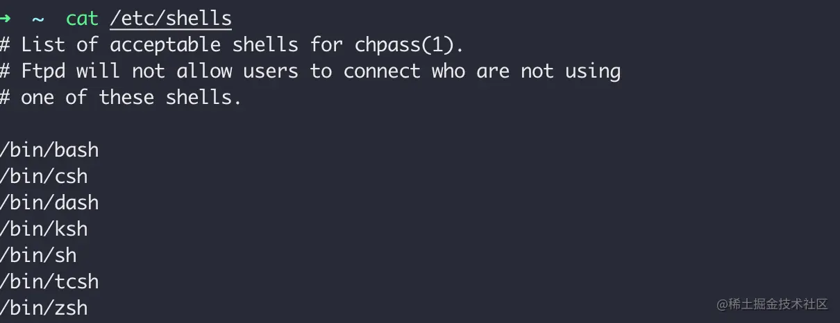 cat /etc/shells