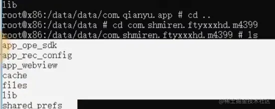 其中,/data/data主要存放应用程序的数据。cd到我们预装载应用包名,用ls命令查看到一些隐私存储文件,我们需要root权限才能访问,俗称沙箱。