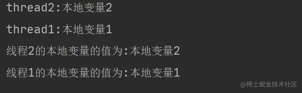 System.out.println("线程2的本地变量的值为:"+threadLocal.get());