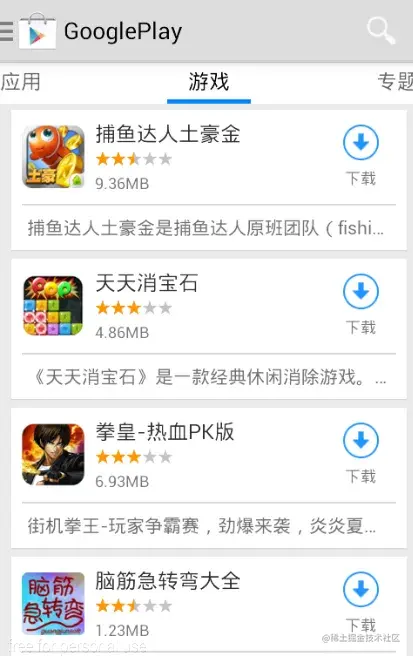 游戏界面和应用界面,实现方式一样,只不过显示的数据不一样。