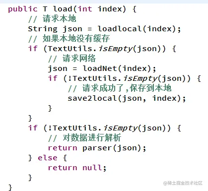 - 首先,如果服务器之前已经读取过了就不需要在联网了,可以读取本地缓存的数据。