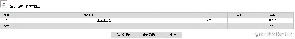 若客户没有订购任何菜肴,则不能提交订单,提示如下图: