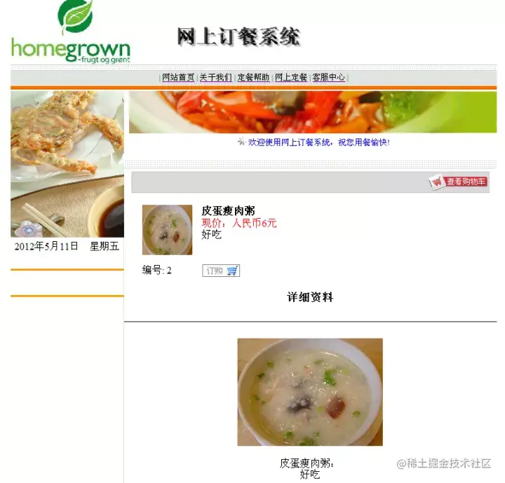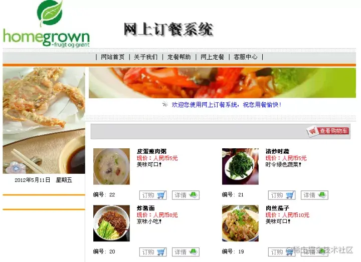 订餐系统主界面展示了所有的菜品,听过客户查看选择,并可以加入购入车,准备下单订餐。
