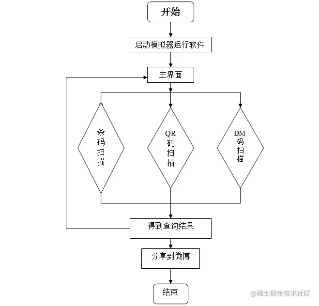 (3) 根据课题所实现的功能,然后按照需求分析里面的界面设计和功能模块进行分析,首先是程序界面设计是否符合要求。其次,进行功能模块的测试,本课题主要包括三个主要功能的测试:二维码识别功能测试、二维码分享功能测试和查看扫描纪录功能测试。最后得出测试结果。