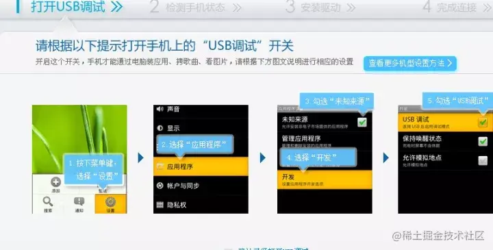 Android模拟器功能虽然强大,但是和真正的android移动设备有一定的差距,还有一些缺点,所以,android程序的测试还必须要在android移动设备上进行测试。测试步骤如下: