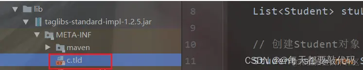 ①<%@taglib prefix="c" uri="java.sun.com/jsp/jstl/co…" %>以上uri后面的路径实际上指向了一个xxx.tld文件。鼠标停留在路径上,按ctr键就会自动显示对应的xxx.tld文件,例如:C:\Users\86177\IdeaProjects\JavaWeb\jsp\web\WEB-INF\lib\taglibs-standard-impl-1.2.5.jar!\META-INF\c.tld