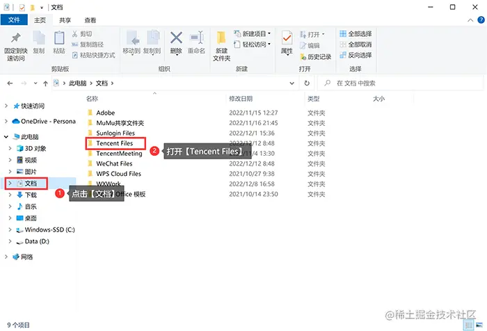**步骤1:**打开【此电脑】,在左侧的项目中,找到并打开【文档】,在右侧的具体内容中,找到一个名叫【Tencent Files】的文件夹,双击打开。