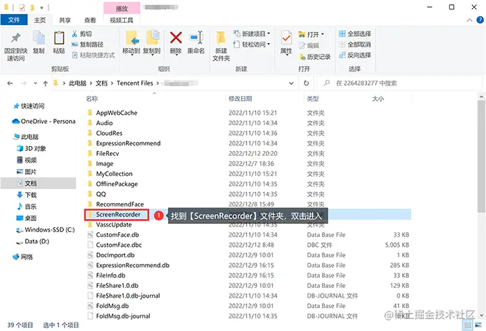 **步骤3:**找到并双击进入文件名称为【ScreenRecorder】的文件夹。进入后,你可以在这个文件夹中找到以往所录制好的视频文件。