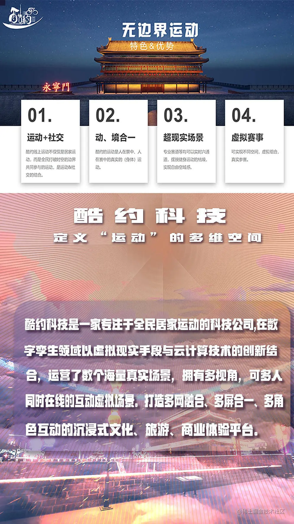 参赛者在基于全国各地城市、山川、建筑等元素建立的云端数字场景中跑步、打卡、答题并直到终点,期间辅以趣味性极强的答题环节,以用时最短者为优胜。是中国第一个集体育、文化、智力、娱乐、科技为一体的云端全域运动健身+文化研学公益项目。