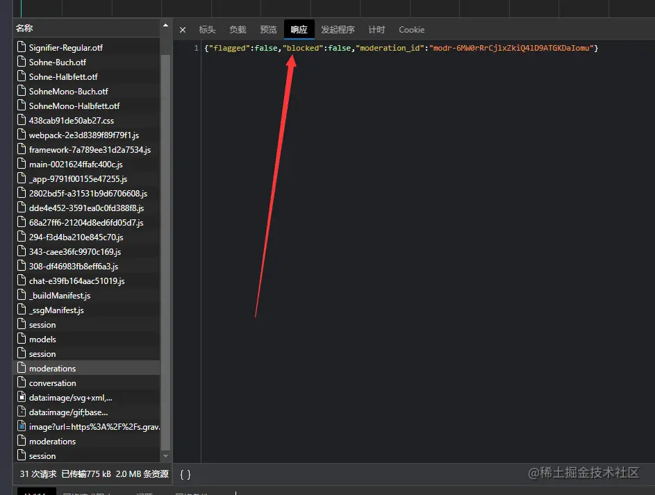 在hack成功后,通过屏蔽moderetions的api请求,可以绕过OpenAI对于输出内容的审查.
