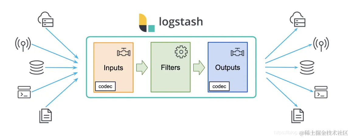 remove_field => ["@version", "@timestamp"]: 默认logstash会添加这两个字段,这里去掉;document_id => "%{type}_%{id}": 将两个字段拼接作为es的文档id;