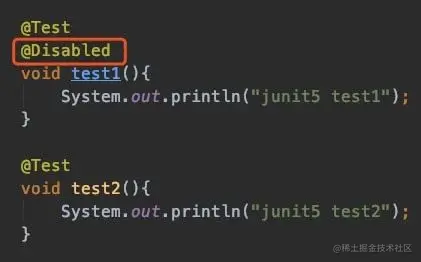 | @Disabled | 禁用测试类或方法 |