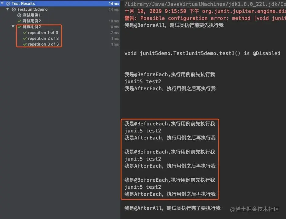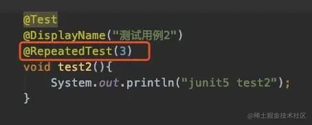 @RepeatedTest,使其额外重复执行3次