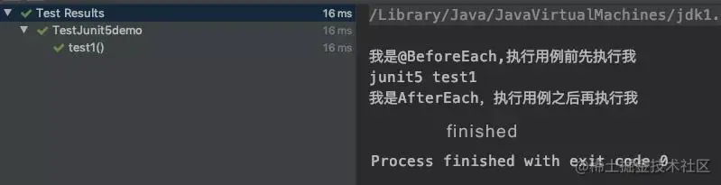 | @AfterEach | @After | 被注解的方法将在当前类中的每个 @Test 方法后执行。 |