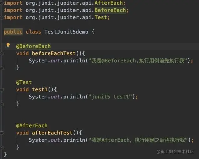 3)添加用例@Test,再在用例执行前后添加@BeforeEach、@AfterEach: