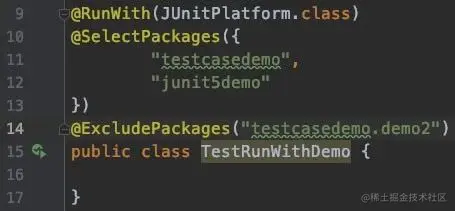 @RunWith+@SelectPackages+@ExcludePackages配合使用过滤出不需要执行的测试包testcasedemo.demo2