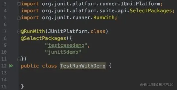 @RunWith 是从Junit4迁移过来的,@RunWith 连同它的参数 JUnitPlatform.class(一个基于 JUnit 4 且理解 JUnit Platform 的 Runner)让您可以在 Eclipse 内运行 JUnit Jupiter 单元测试。Eclipse 尚未原生支持 JUnit 5。未来,Eclipse 将提供原生的 JUnit 5 支持,那时我们不再需要此注解;Junit5官方给出了替代它的注解:
