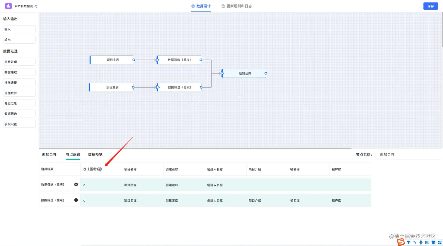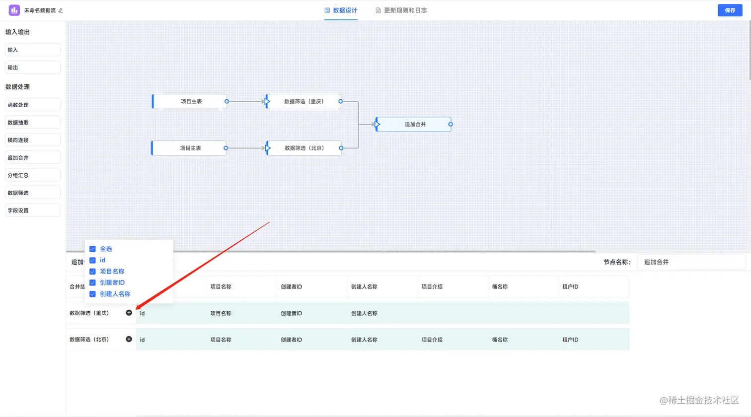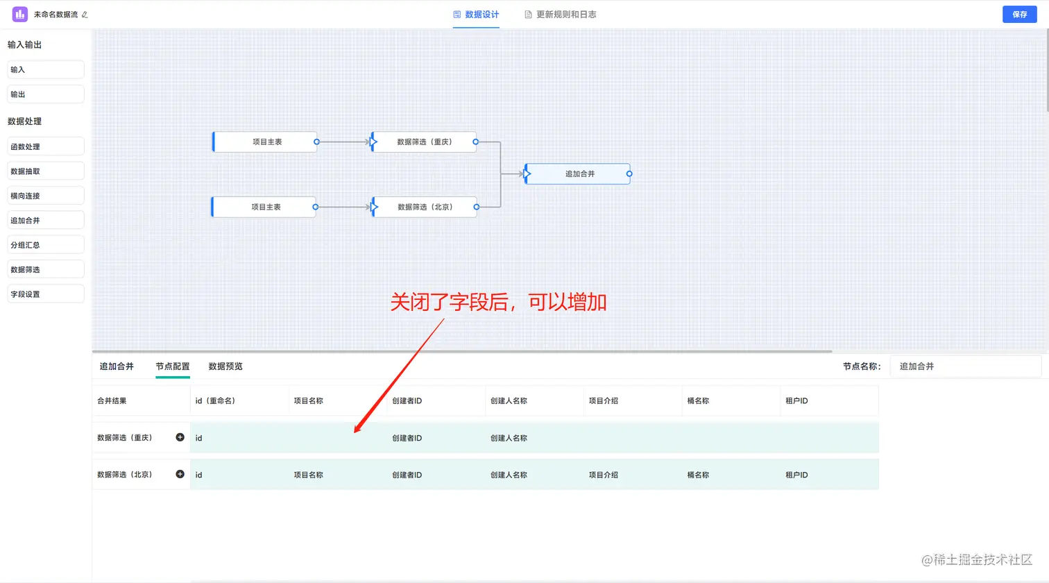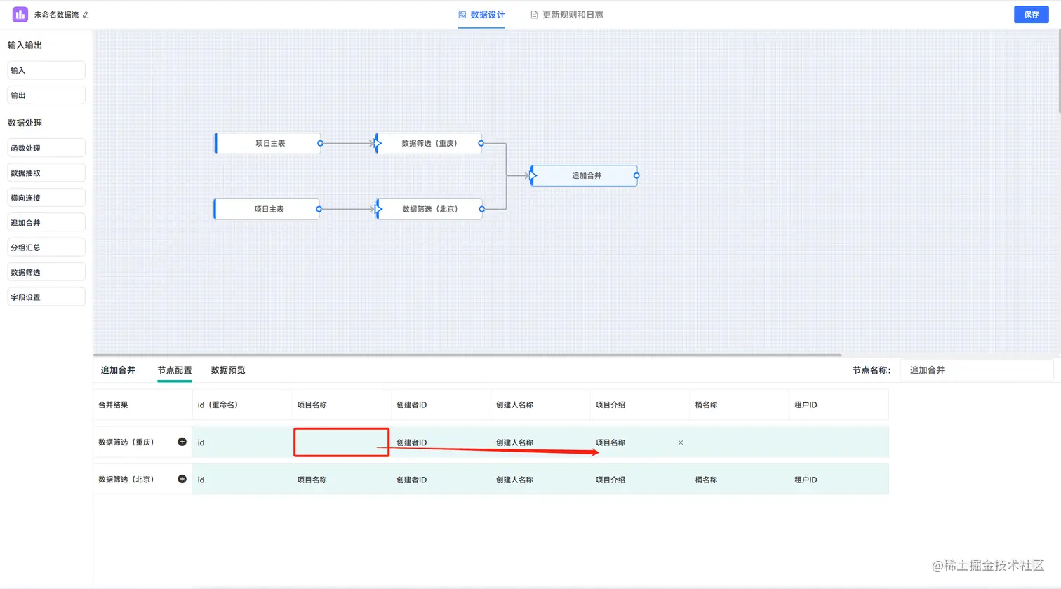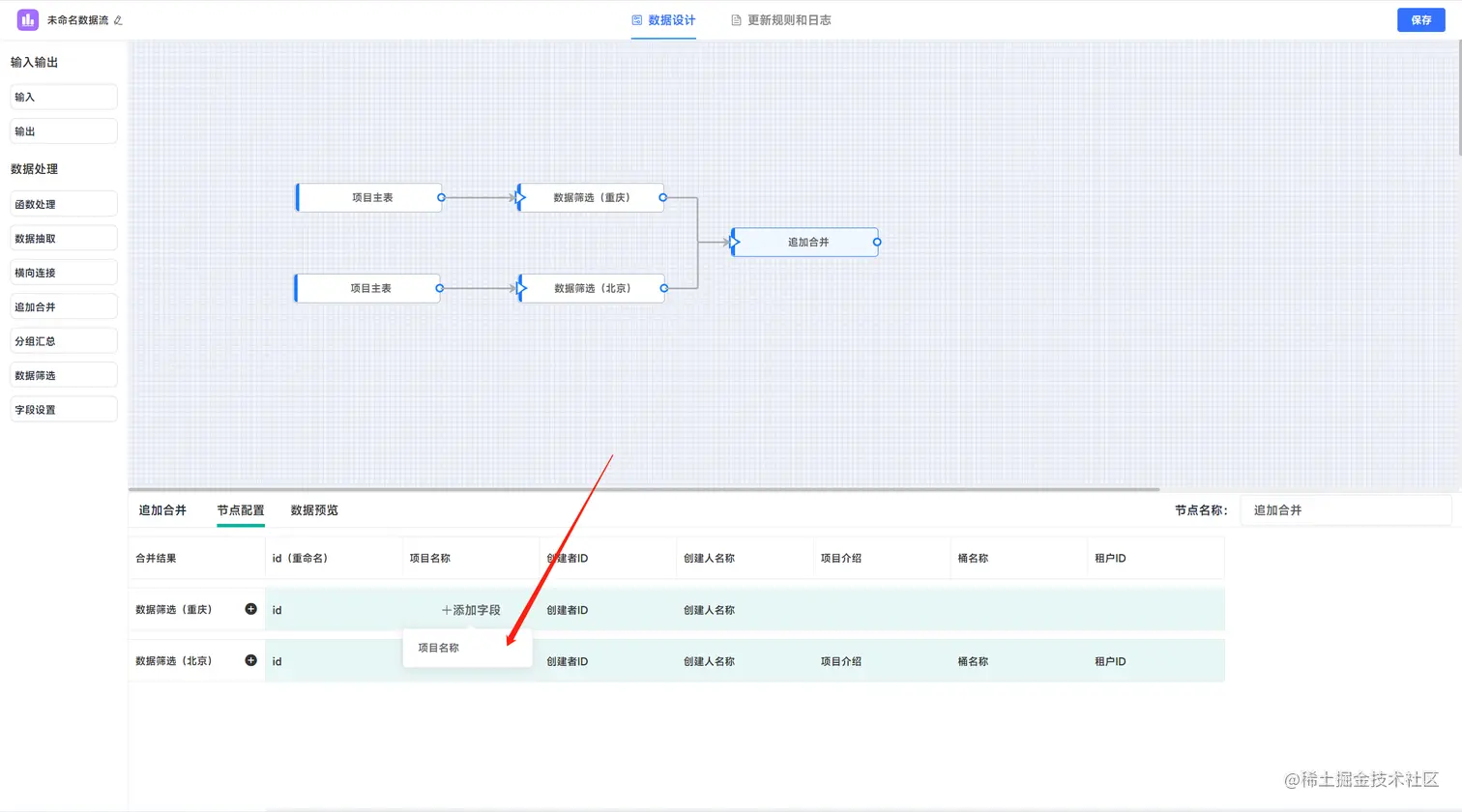 追加合并主要应用在数据结构几乎相同的数据表 合并为一个数据表,合并的过程中可以调整字段的映射关系。